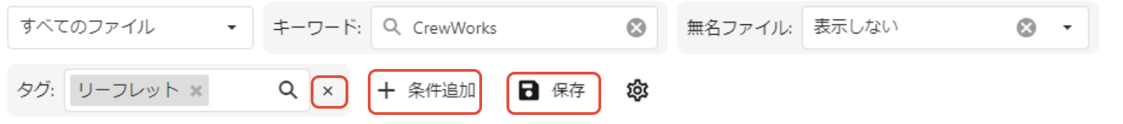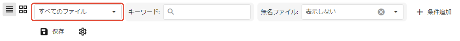 - キーワード・・・ファイル名や説明などのキーワードを直接入力