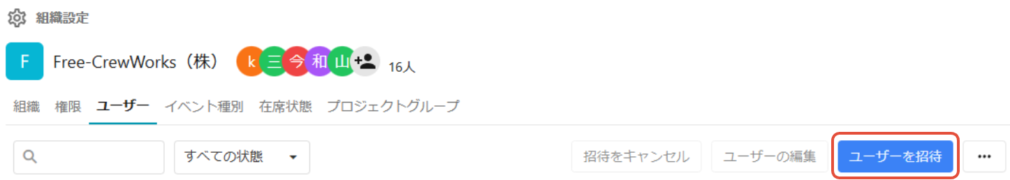 次に、ユーザーを招待します。フリープランでは、ユーザーを50人まで招待できます。