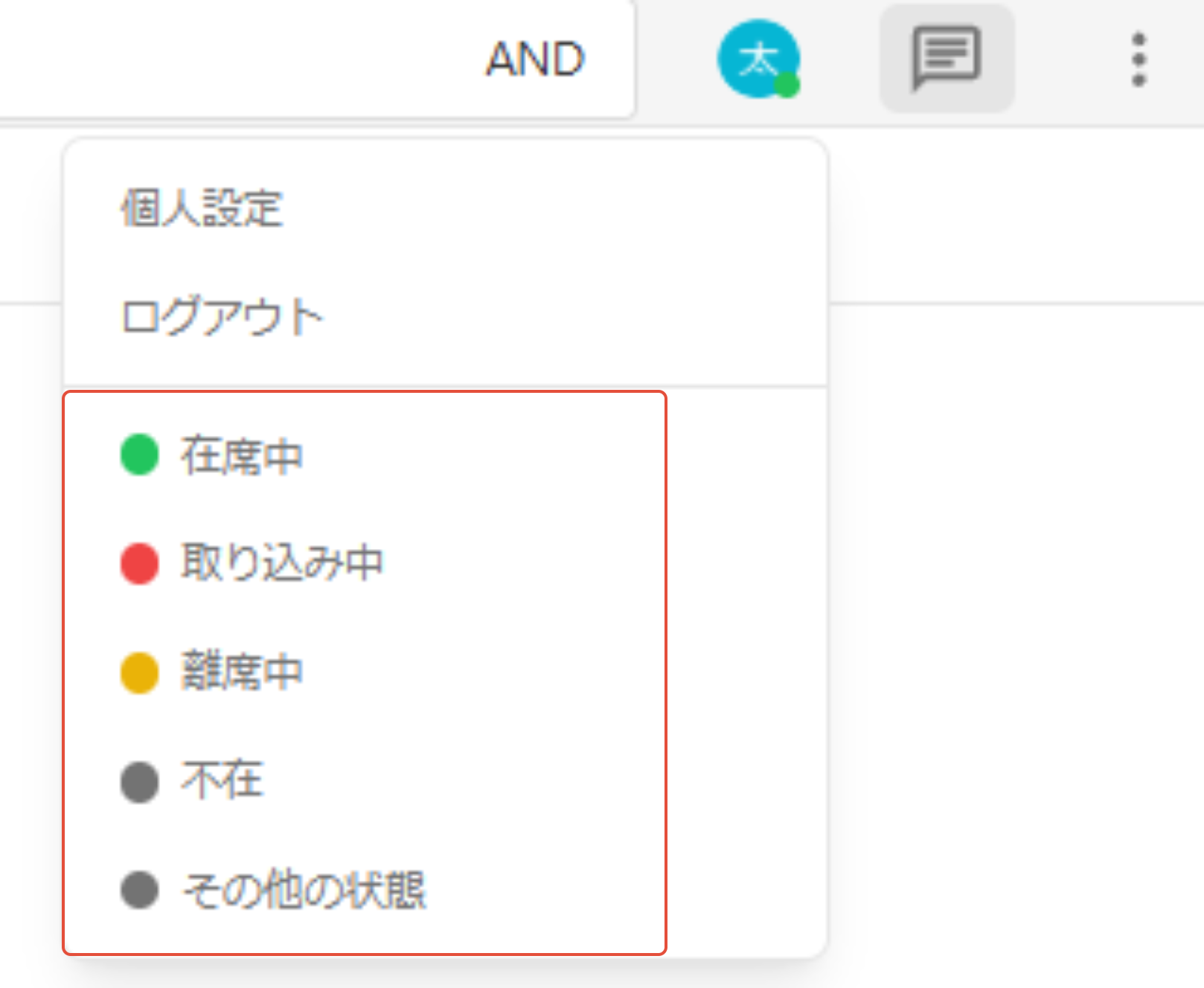 2. 在席状態を選択します。現在の在席状態はアイコンの右下に丸で表示されます。
