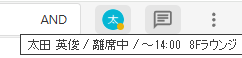 「在席中」「取り込み中」「離席中」「不在」を選択すると、アイコン右下の丸の色が変化します。アイコンにカーソルをあてると、名前と在席状態が表示されます。