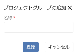 4. 「プロジェクトグループの追加」画面が表示されます。設定したい名称を入力し、「登録」ボタンをクリックします。