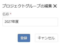 4. 「プロジェクトグループの編集」画面が表示されます。名称を修正し、「登録」ボタンをクリックします。