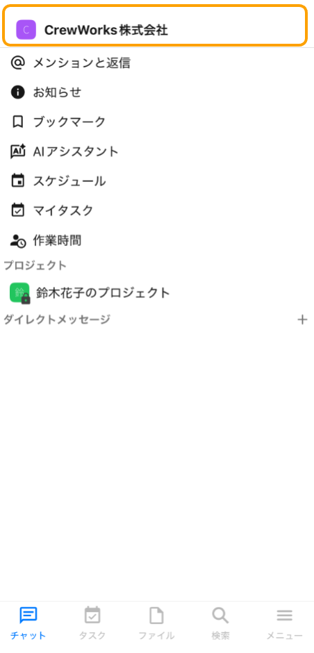 CrewWorksサイト名をタップすることで、ログインしているサイトを切り替えることができます。