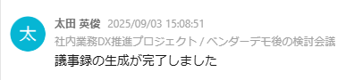 ※ 議事録の作成が完了すると「お知らせ」に議事録の生成完了が通知されます。