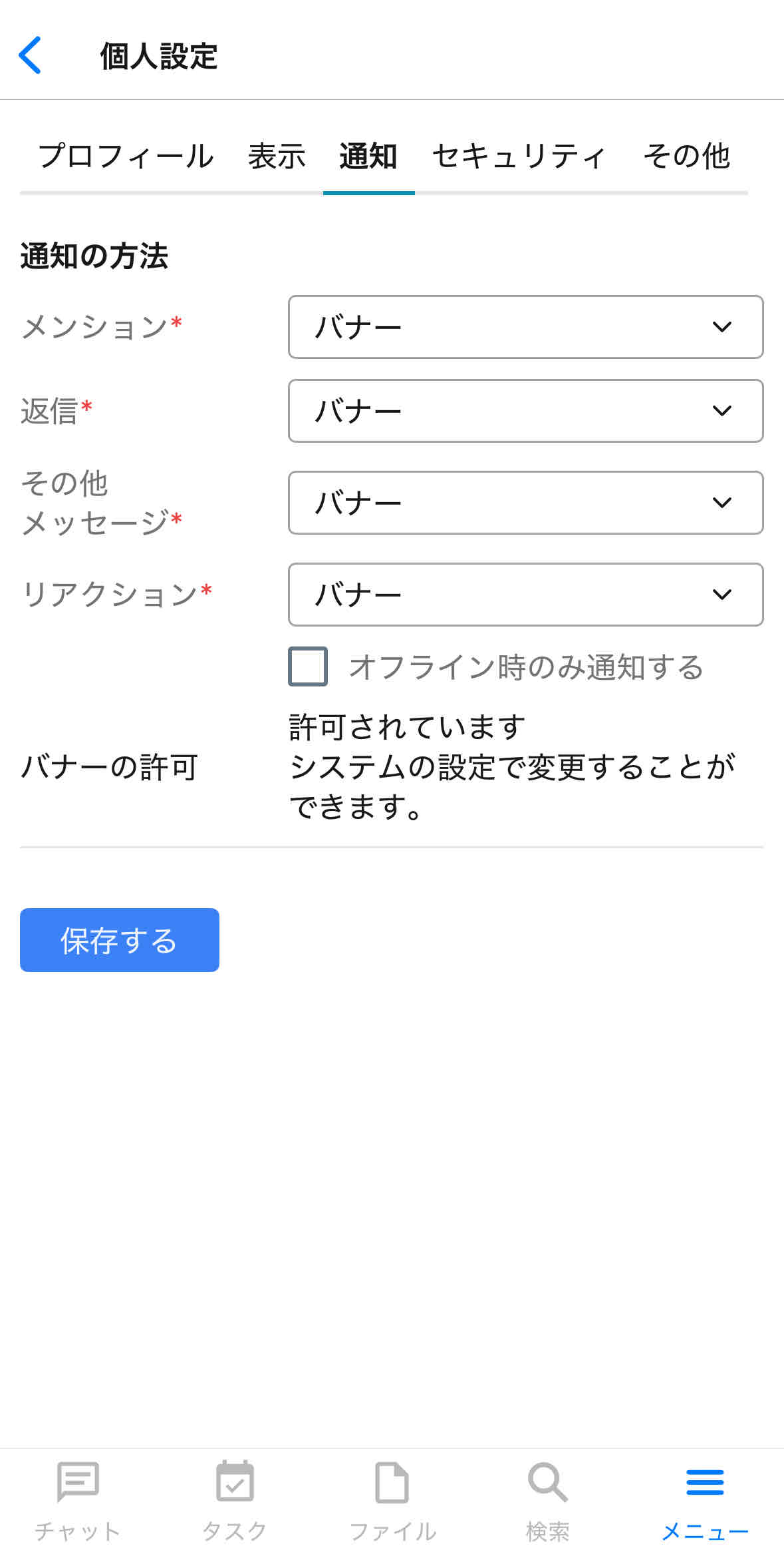 メール通知のみ受け取る、または通知を受け取らない設定になっているとバナー通知は表示されません。