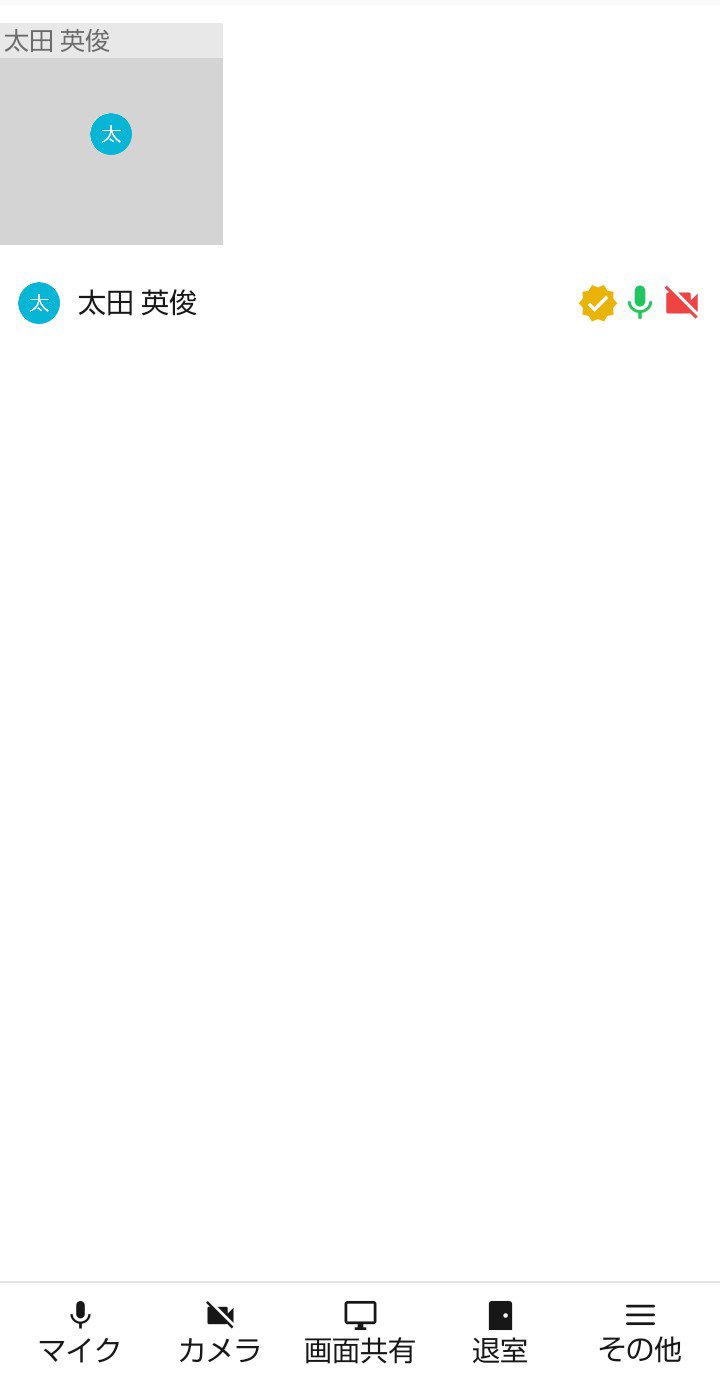 右上の「会議を開始」ボタンをタップすると、会議を開始することができます。