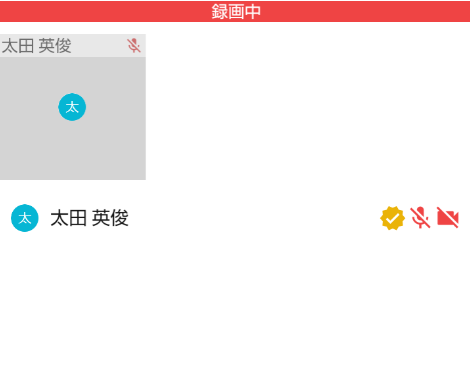 録画中は、画面上部に「録画中」と表示され、会議が録画中であることがわかります。