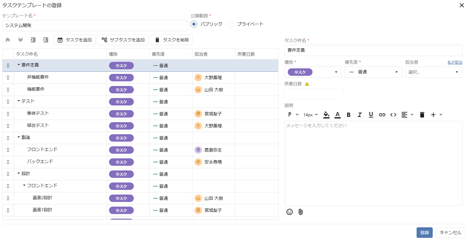【タスクテンプレートの作成画面】