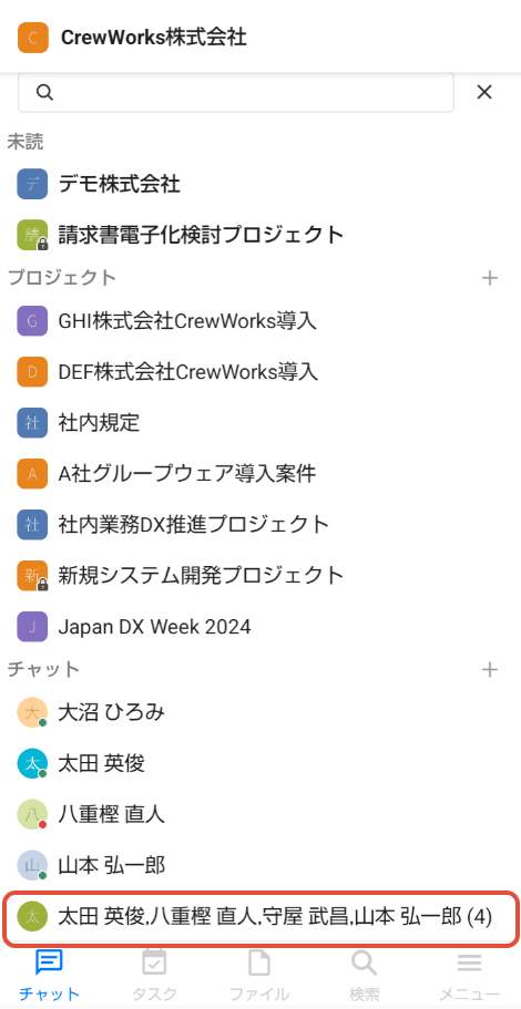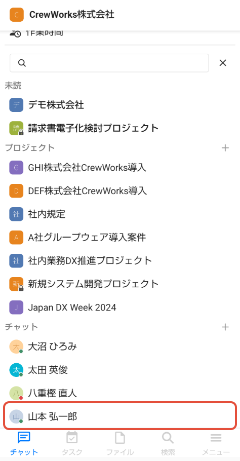 4. 画面を戻ると「チャット」欄にメンバーが追加されています。